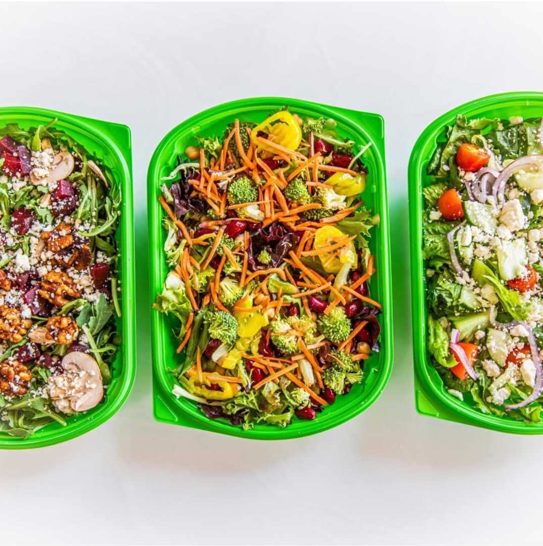 Create your salad by choosing greens, toppings (5) and house-made dressing. Add protein and other additional premium toppings for a lit...